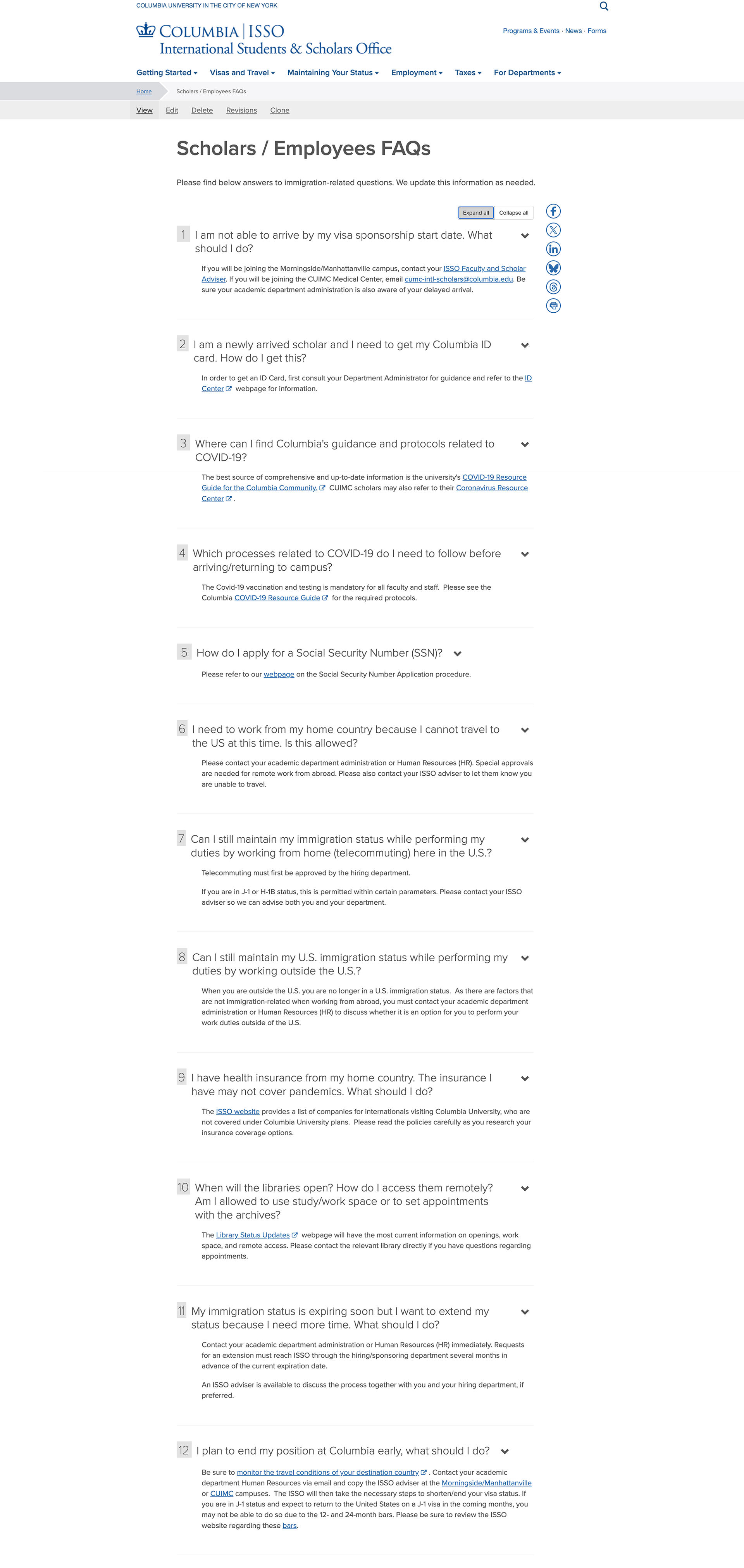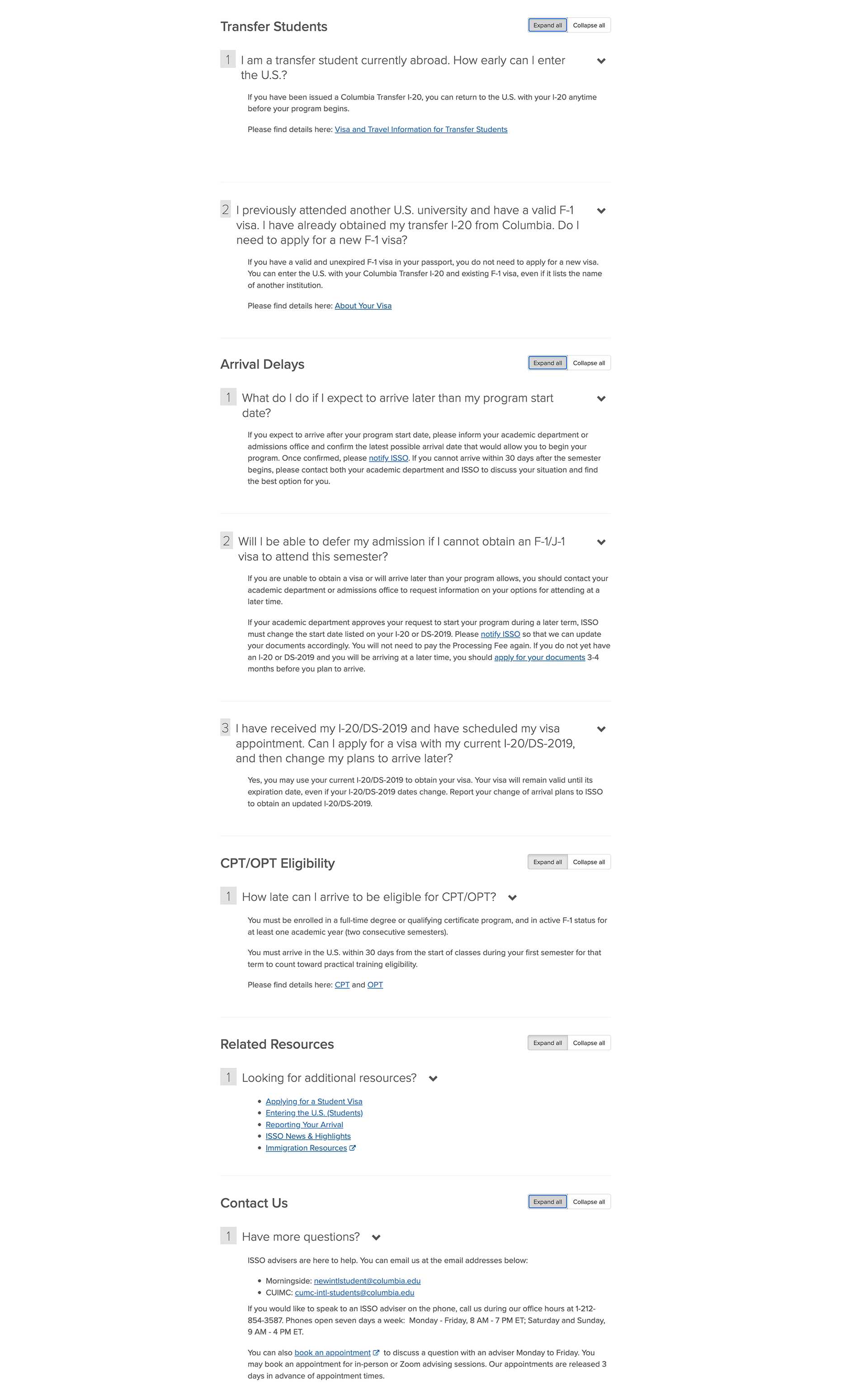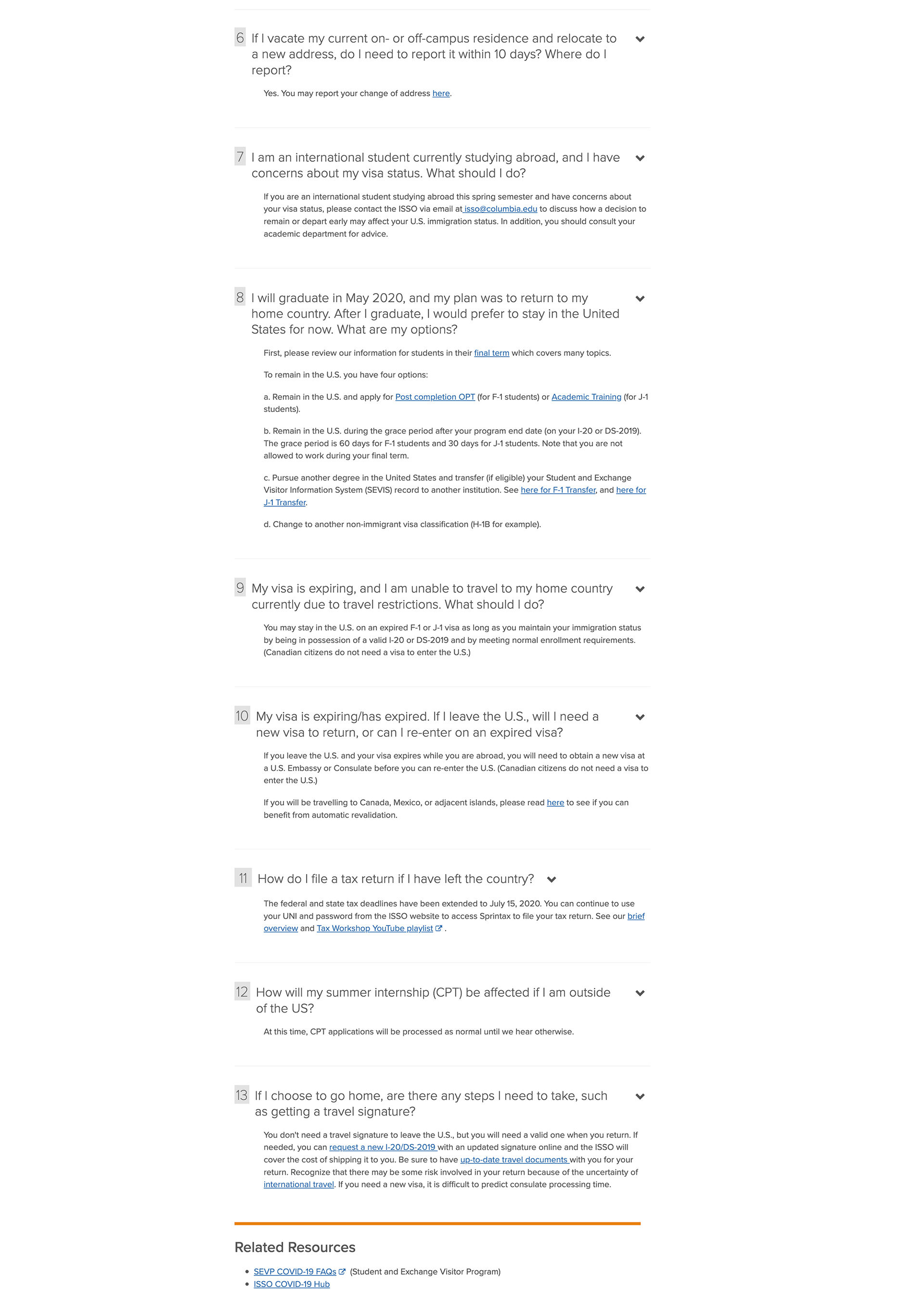 After the immediate COVID-19 crisis subsided, the FAQ infrastructure remained in place. Working with advisers, I transitioned the pages from pandemic-specific guidance to broader immigration and program questions, ensuring the resource continued to address the most common issues students encountered.